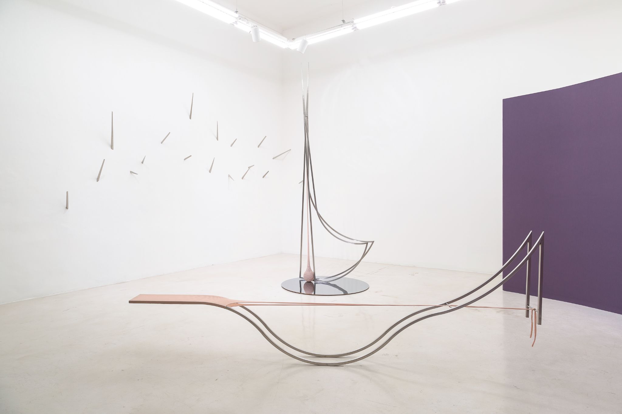 This is relevant because we can perceive the boundary of sculpture at the crossroads with philosophy, communication, and physics—an interval in which the work of Marcolina Dipierro moves organically from an intuitive and diverse methodology. In its encounter with grammar, we can see that it employs analogous rules of composition, structure, and rhythm. She works by attending to a quasi-syntactic structure, understood as a relational space. She shares with physics the mode of analysis, producing objects or systems that do not necessarily resemble real phenomena, but that nevertheless account for the gestural, expansive, and immanent dimension of life’s experience. She reads space as the interval between things different from one another.